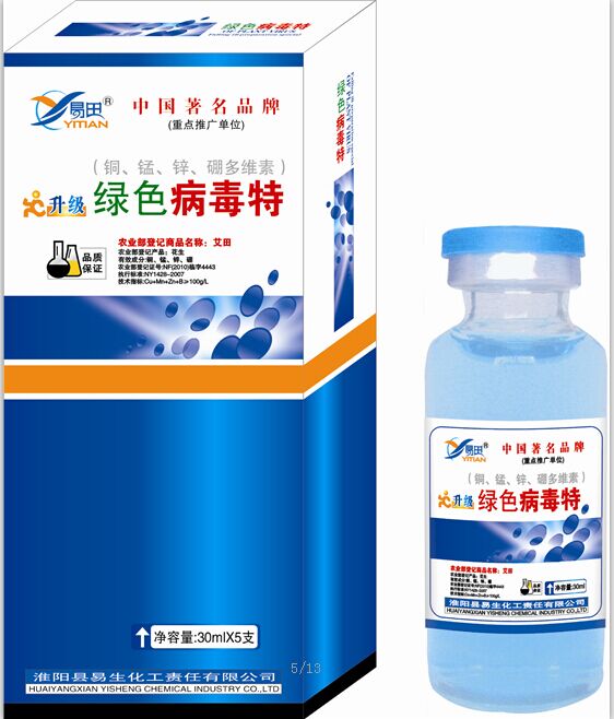 防治方法;易田牌;病毒特15毫升+天力168;5克+蚜特啶6克+尿素100克对水30斤均匀喷雾2—3遍间隔4-5天,